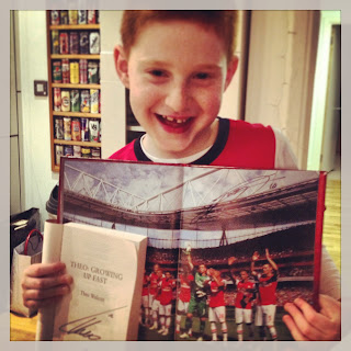 Ron won a ruffle to go to the Junior Gunners Fun Day, and had his Best Day Ever :) where he had a chance to meet all the players in the first team, get his Theo Walcott book signed by Theo, play air hockey and other games with the players and a pantomime show. It was 400 kids, and we were very worried that he will be okay, have fun, actually get the autographs he wanted (he got Walcott and Wilshere but not Podolski unfortunately), etc. Of course he was fine, he managed on his own and did not really care that we abandoned him there for a full day. Also I think Hidai was just jealous and that's why he was sorry he didn't get to go with Ron...